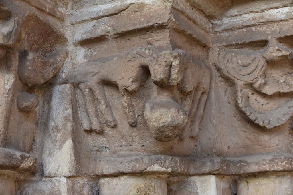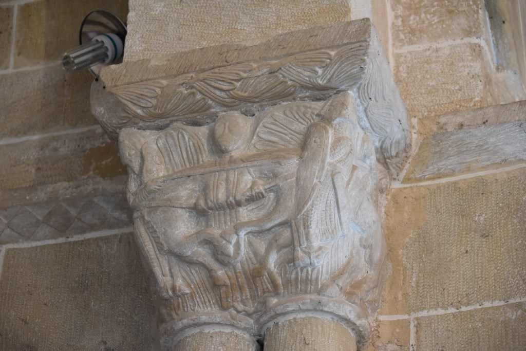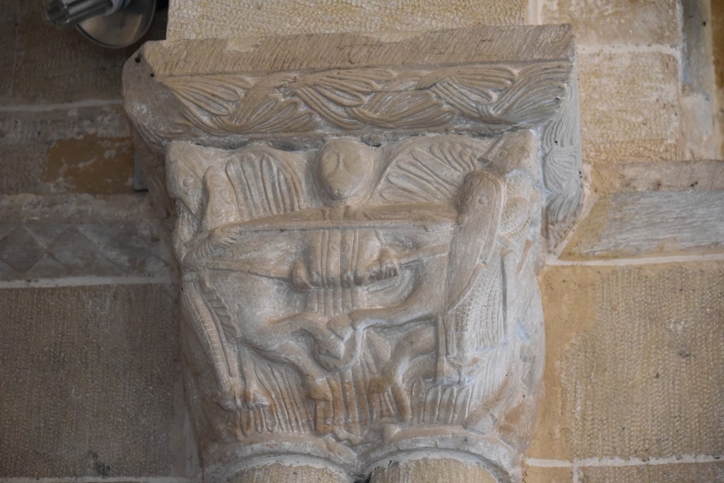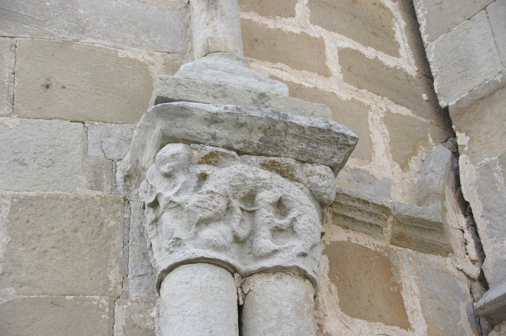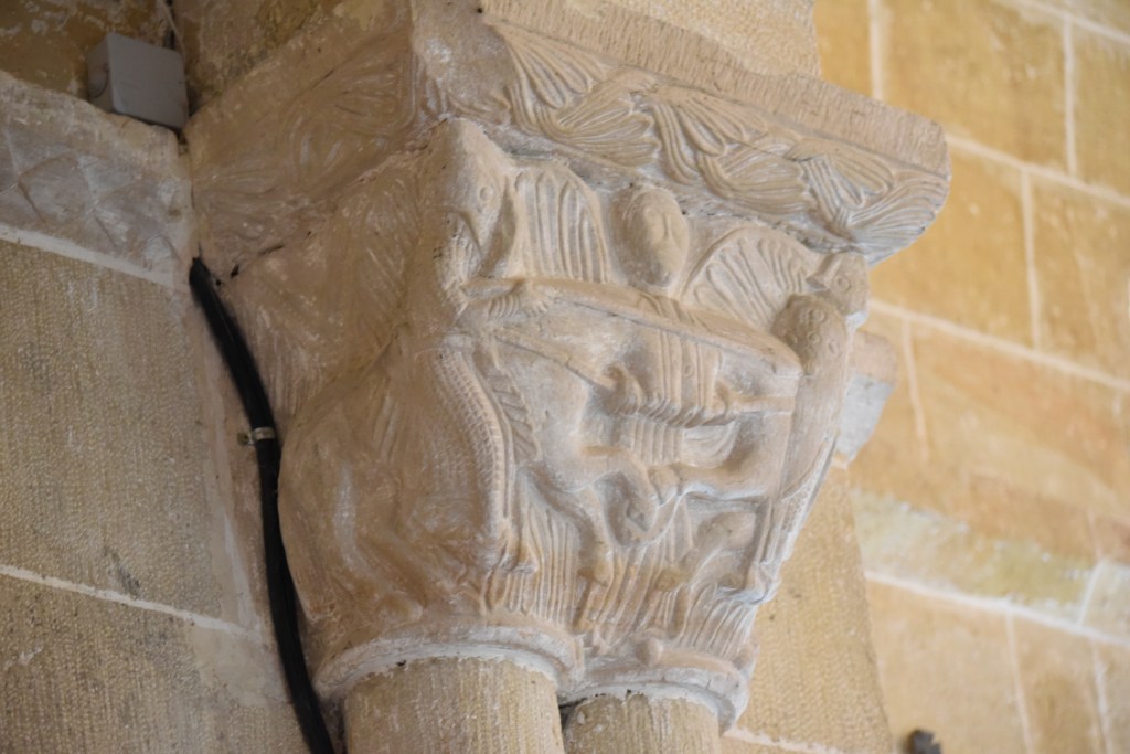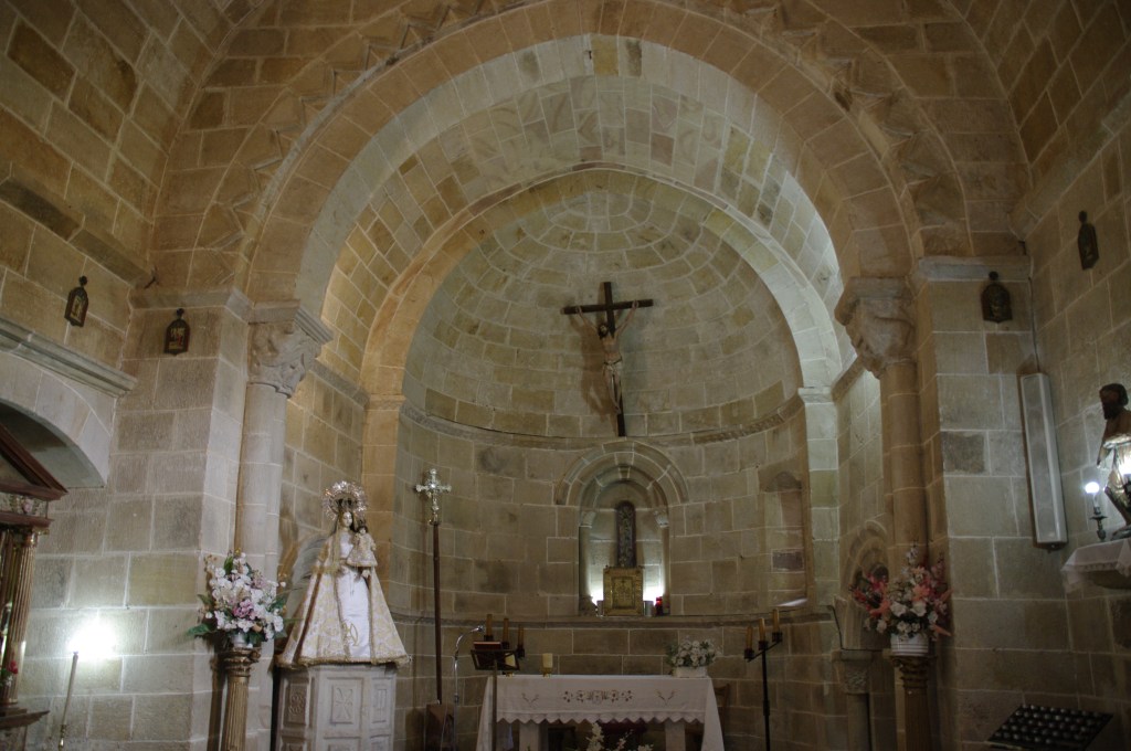 A media tarde de este caluroso verano de 2022, aprovechando la apertura de monumentos, llegamos a Villavega de Aguilar, en el término de Aguilar de Campóo, provincia de Palencia. Es un pueblo pequeño pero de aspecto pulcro y buenas casas de piedra, alguna con escudo. A la entrada encontramos una pequeña ermita dedicada a la Virgen del Amparo, pero su tesoro es la iglesia de San Juan Bautista, levantada a caballo de los siglos XII y XIII, con añadidos posteriores de una sacristía, el atrio y el baptisterio. Fue propiedad del Monasterio de Santa María la Real por donación del Conde Osorio y su mujer, Teresa Fernandez, en 1141. Se cree que en su construcción -con sillares de cantería- intervinieron las cuadrillas del entorno del Maestro de Piasca, que también trabajaron en Gama o Pozancos. Es Monumento Histórico Artístico desde 1993.