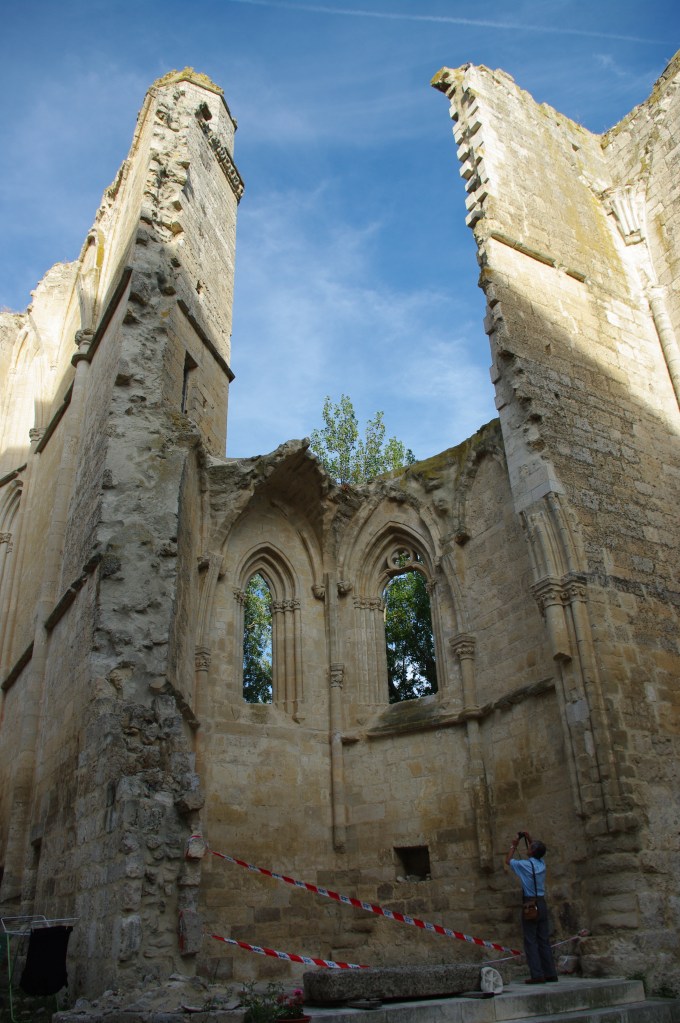 Lo que el viajero encuentra nada tiene que ver con aquella fundación primera. Las ruinas que tiene ante sí corresponden a la fábrica levantada en el siglo XIV, una iglesia y una hospedería en la que acoger a los peregrinos. A tenor de lo que permanece en pie debió ser un convento grandioso. Los peregrinos que siguen pasando junto a él pueden contemplar las seis arquivoltas de su enorme portada y muros muy mellados de lo que fueron sus naves.