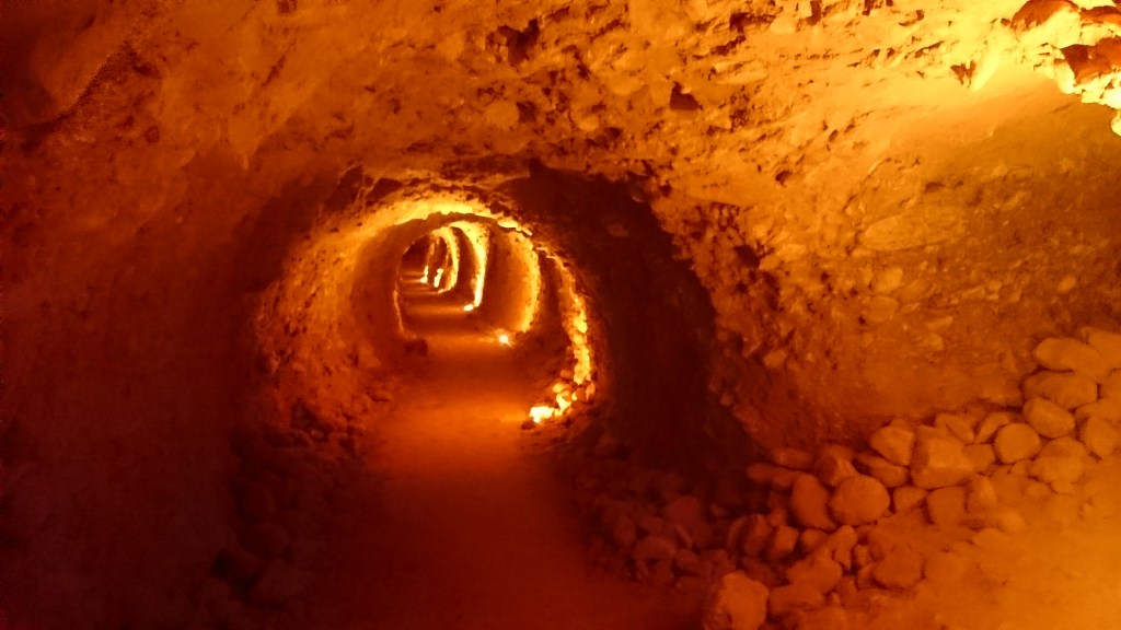 Bajo una lluvia fina recorrimos de nuevo la ruta entre el Mirador y Orellán, con el propósito de visitar las galerías excavadas por los romanos. Comprobamos desde el balcón-mirador que la niebla ocultaba el valle. Los jóvenes que atendían los accesos a las galerías subterráneas nos aseguraron que es raro que llueva y haga niebla a la vez. Llegamos a la conclusión de que las Médulas se empeñaban en obsequiarnos con un despliegue de sus facultades y poderío.