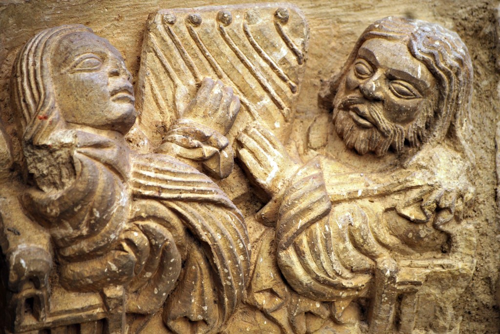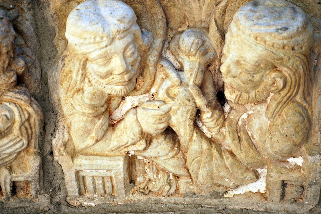 Encontramos a varias personas que admiran el monumento. No nos dan los ojos para tanto como hay que mirar. Solo con los canecillos que rematan los muros norte y sur y los ábsides y sus metopas nos llevarían toda la mañana. El muestrario es enorme: hay animales reales y fantásticos de todo tipo.