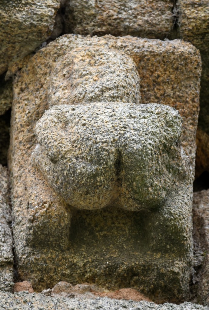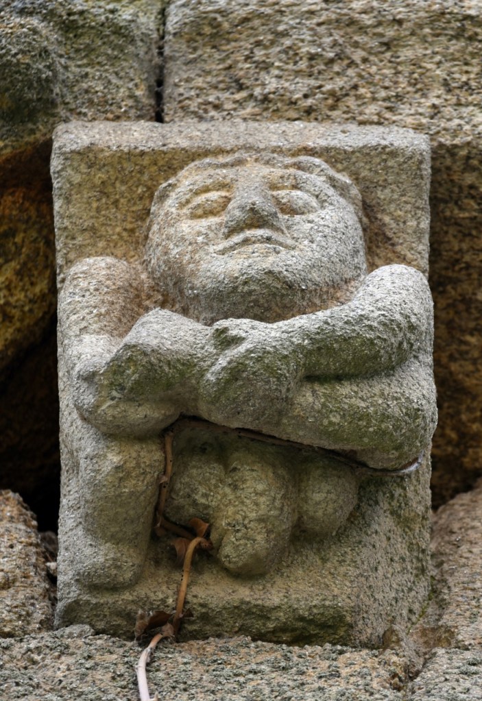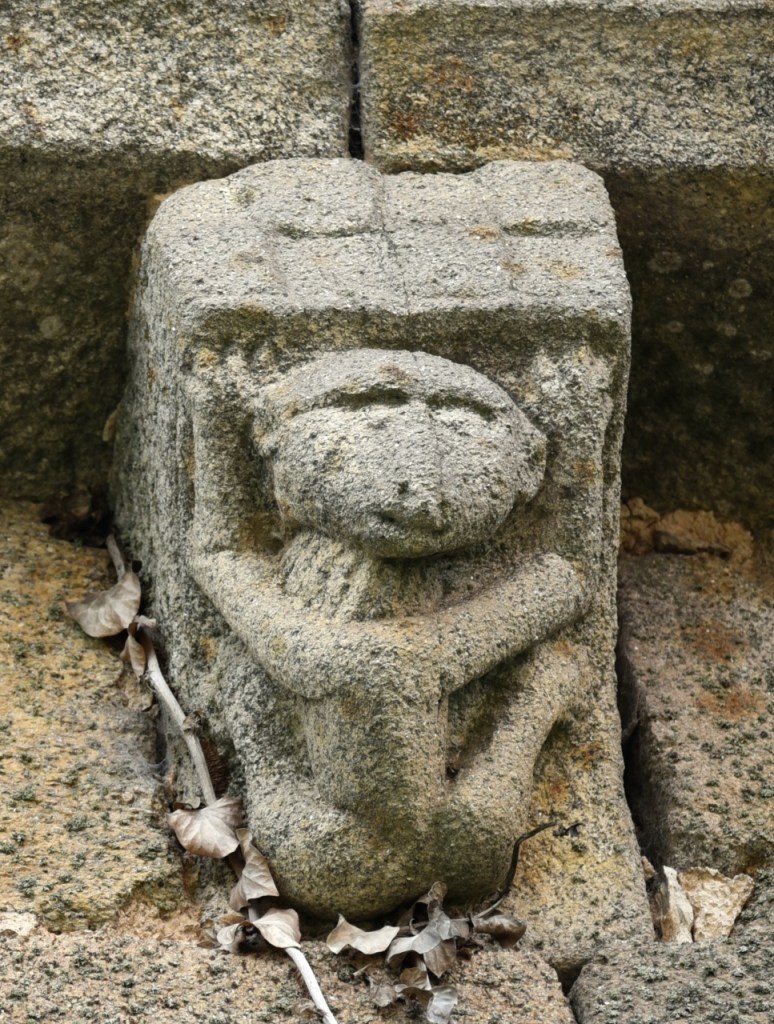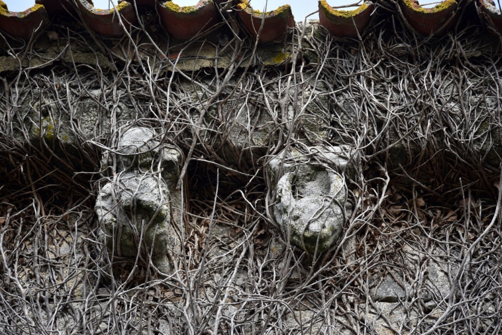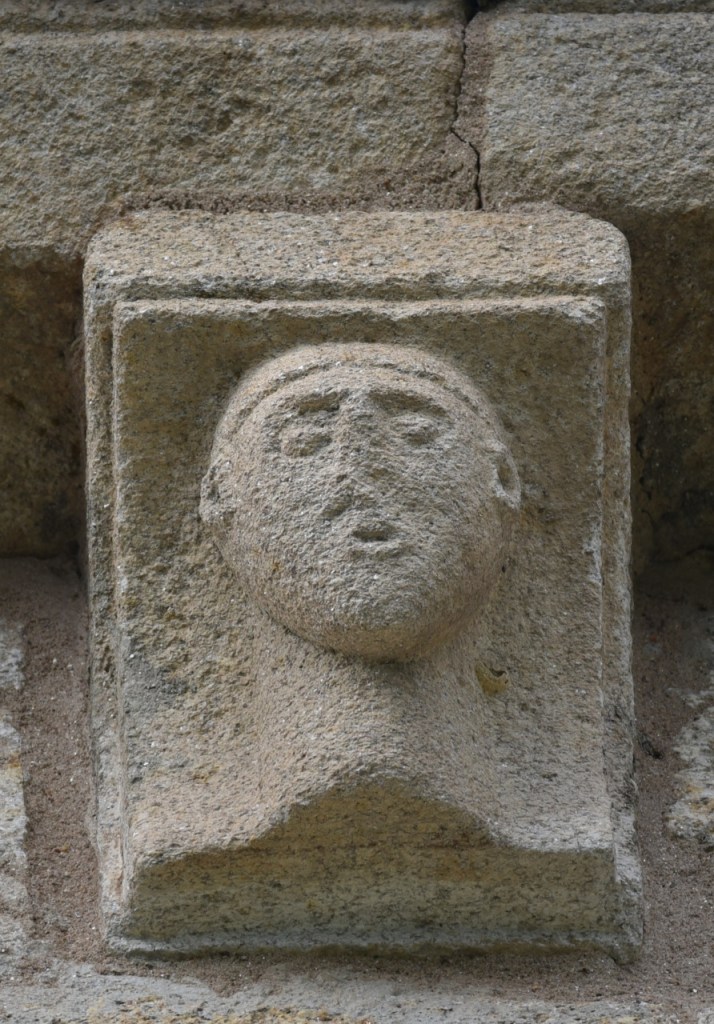 A lo largo de los muros de la iglesia una amplia colección de canecillos geométricos y figurados, entre los que destacan cabezas de animales, una pareja mostrando sus genitales -demostración quizá del poder del linaje de la familia protectora- y un hombre defecando. Algunos de ellos están sepultados por un denso ramaje que, aparte de ocultarlos, amenaza su integridad.