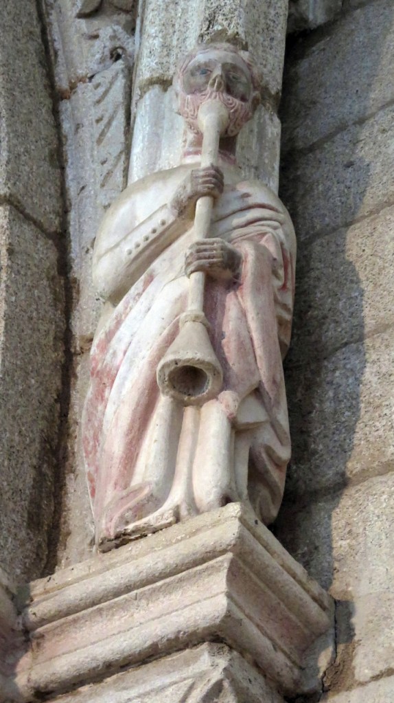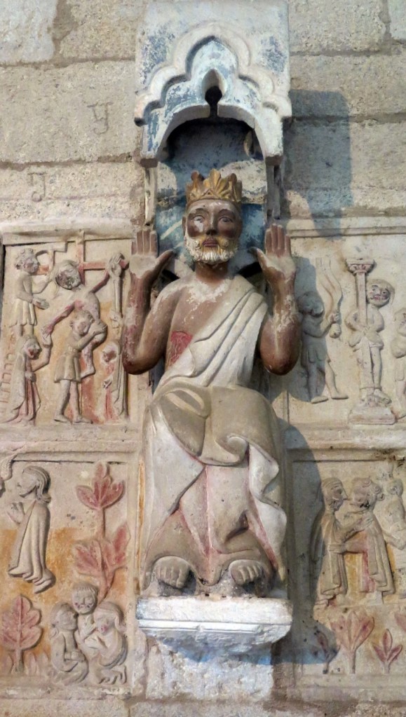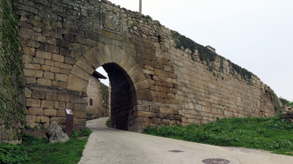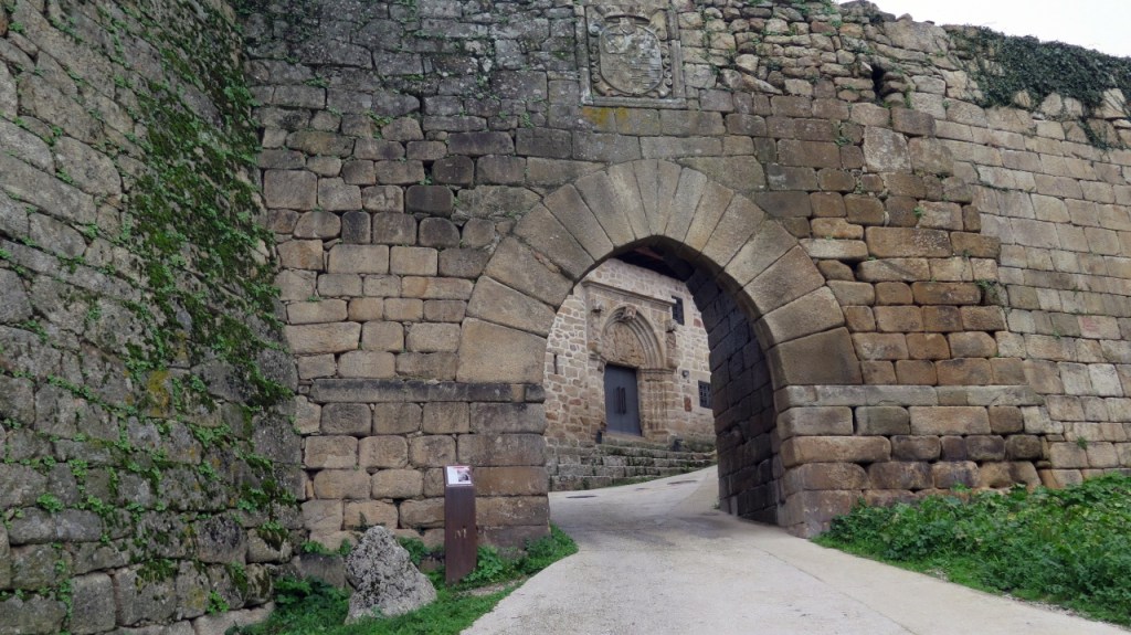 Con estos antecedentes, tomados del folleto que nos han dado en la oficina de turismo y de san Google bendito, subimos la empinada cuesta que conduce a la puerta del Sol. Esta es la entrada meridional, a través de la que se accede a la segunda línea de muralla. Sobre la puerta, el escudo de armas de los condes de Monterrey advierte de en qué territorio nos adentramos. Justo enfrente de esa puerta se levanta el Hospital de la Trinidad, obra del siglo XIV recientemente restaurada, es la construcción más importante de este recinto. Una inscripción en su fachada recuerda que fue levantado en 1429 para atender a las personas necesitadas y a los peregrinos del Camino de Santiago.