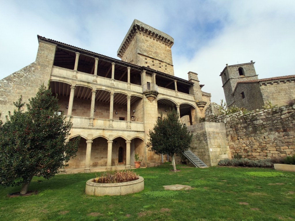 Este se levantó entre los siglos XVI y XVII, en estilo renacentista, de planta cuadrangular, con logias en su fachada este -de dos pisos- y sur -de tres pisos, en razón del desnivel del terreno-. En sus enjutas se repiten los escudos de los linajes propietarios. La fachada oeste forma parte de la muralla defensiva. Su interior alberga el Parador de Turismo.