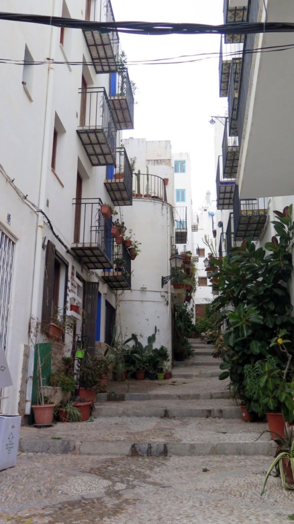 Nosotros entramos a Peñíscola por la Puerta de San Pedro, mandada construir por el Papa Luna, cuyo escudo permanece en una de las dovelas del arco. Se entre por donde se entre no queda más remedio que remontar cuestas sucesivas hasta alcanzar el castillo. Remontamos tras sucesivas pausas para disfrutar del paisaje.