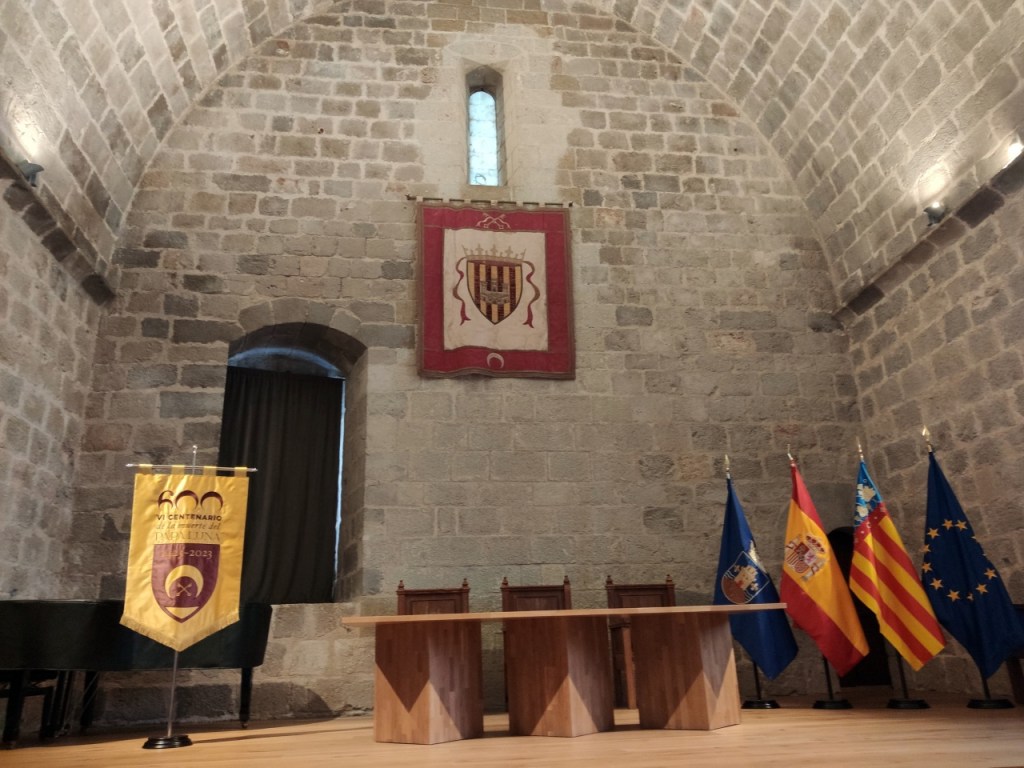 Desde el patio de armas se accede a las dependencias: salón gótico o de audiencias, cuyo carácter de lugar virtuoso se aprecia en la alternancia de sillares blancos y negros; casa del agua o cisterna, donde estuvo la rebotica; iglesia, dedicada a la Virgen y a los Reyes Magos; y sala del cónclave, la antigua bodega donde fue elegido el sucesor del Papa Luna. Una escalera en el ala sur conduce a las dependencias papales. Emociona pensar que en este sencillo lugar trabajó y escribió, y quizá debatió consigo mismo, don Pedro Martínez de Luna, “el gran aragonés de vida limpia, austera, generosa, sacrificada por una idea del deber”, como reza una lápida en su Castillo.