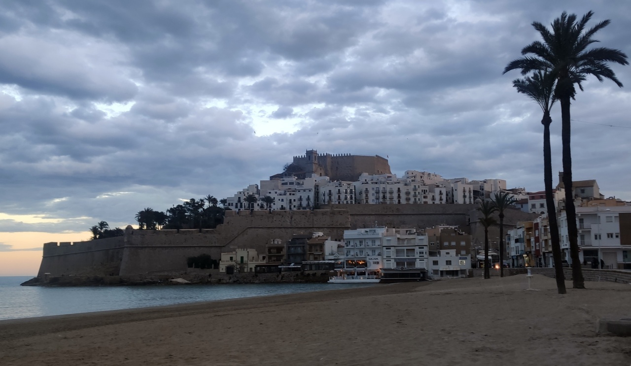 Mientras el sol se esconde tras la cercana y sobreedificada montaña, damos la vuelta a la península casi solos, lo que resulta un verdadero placer. Su fotogénica belleza ha hecho de Peñíscola escenario de varias producciones de cine, entre las que se recuerdan Calabuch (1956) y París Tombuctú (1999), ambas dirigidas por Luis García Berlanga, o El Cid (1962), por Anthony Mann, y de series de televisión, como Juego de Tronos o El Ministerio del Tiempo, escenarios que se han convertido en un interesante itinerario callejero.