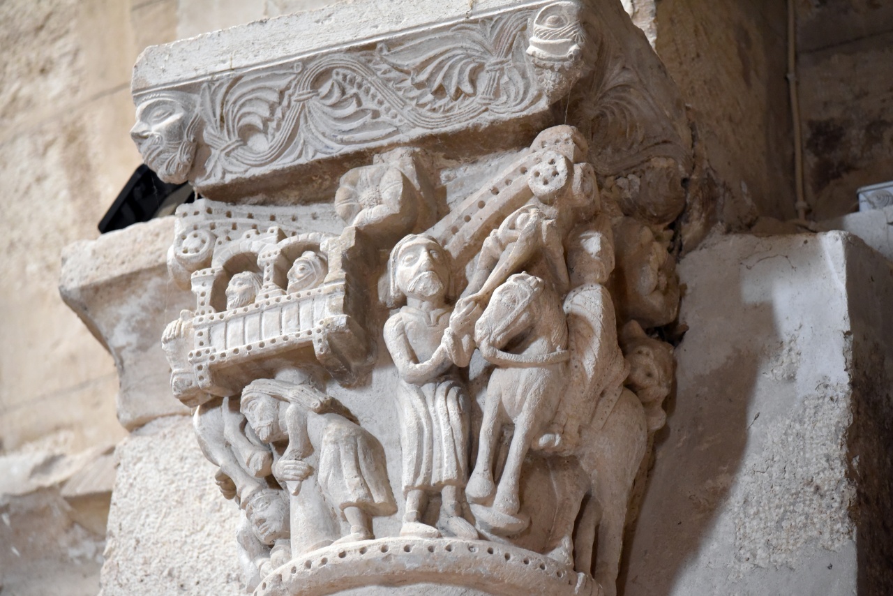 Sea cual sea el mensaje que el tallador quiso trasladar, es evidente su destreza a la hora de relatar escenas quizá propias de la época: la posición de poder de los señores, por encima de las minucias del mundo, ajenos al preso atado a la columna, al vencido sometido, al hombre preparando la honda. ¿Quiénes serían esos señores retratados en el capitel? ¿Los condes de Haro, quizá?