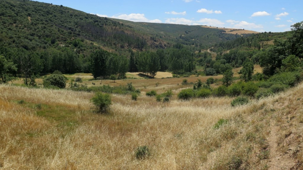 En los valles vemos castaños, viñas y olivos, de los que se extrae un aceite muy característico. En los pueblos, comparten espacio las viviendas tradicionales -idénticas a las de sus vecinos gallegos y astures- con las nuevas casas, muchas de ellas construidas siguiendo los modelos de países europeos, previsiblemente el nuevo lugar de residencia de los trasmontanos emigrados. Así y todo, la impresión general era menos dramática que la que emanaba del libro de Llamazares. Aunque lentamente, la región se iba incorporando a la modernización que estaba viviendo Portugal aprovechando la financiación comunitaria. Paramos para hacer fotos y vemos pasar varios turismos, dos furgonetas, una moto, una bicicleta y un autobús de viajeros.