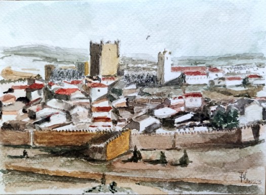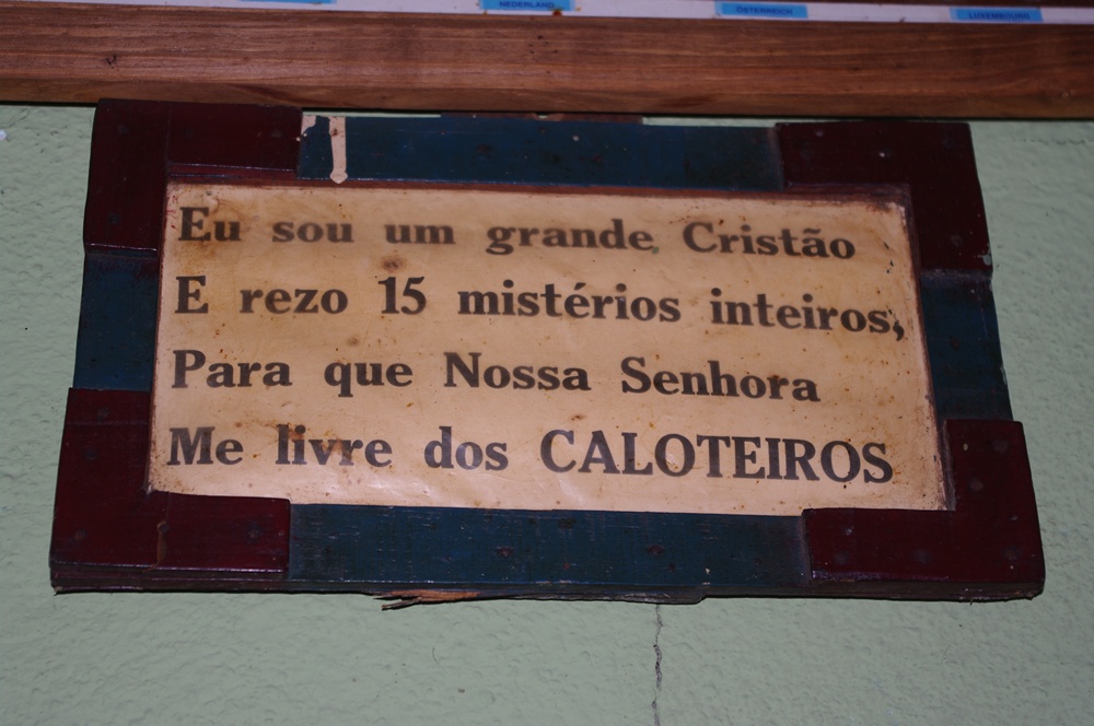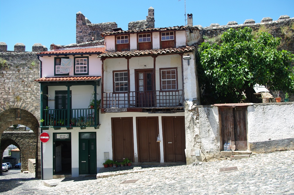 Entre que llegamos en un día laborable, que hemos madrugado y que los bragantinos parecen preferir la ciudad moderna, nos encontramos solos en la ciudadela. Entramos en una taberna con la pretensión de tomar café; no tiene café pero a cambio el tabernero nos ofrece una amable conversación sobre la vida en Braganza y una ginginha (licor de cerezas) elaborada por él mismo en un aparato que nos muestra. Las dos copas, un euro. En la pared cuelga un letrero que reza así: Yo soy un gran cristiano y rezo 15 misterios enteros para que Nuestra Señora me libre de los deudores. Pagamos religiosamente.