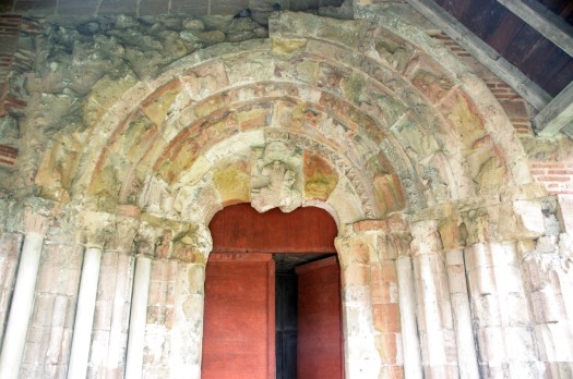 En el brazo norte del transepto se abre una puerta tardorrománica de arquivoltas decoradas pero tan deterioradas que resulta difícil identificar la escultura.