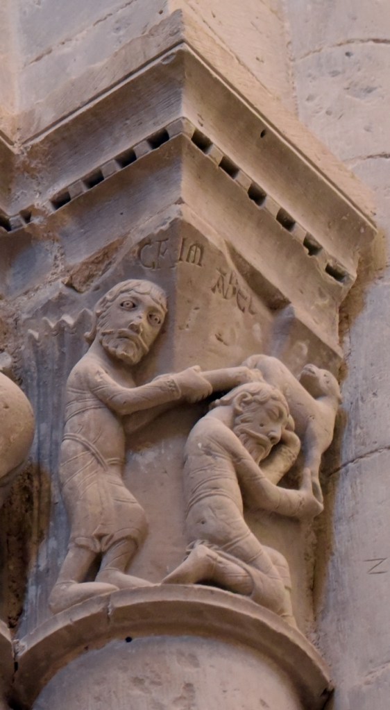 Los ábsides de la cabecera son un despliegue total de canecillos, con personajes diversos, algunos atrapados entre tallos. Decididamente, se necesitaría un mes entero para disfrutar tranquilamente de San Pedro de Alnay.