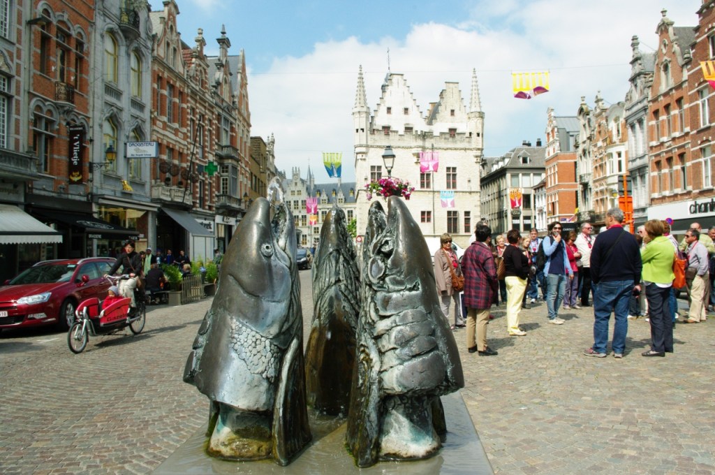 La que nosotros conocemos como Malinas y los belgas llaman Mechelen es una ciudad primorosa, con casas y calles bien cuidadas. Como ya habíamos descubierto en Bruselas, también aquí comprobamos la preeminencia de lo civil sobre lo eclesiástico, a pesar de la grandeza de su catedral, que es sede del cardenal primado de Bélgica.