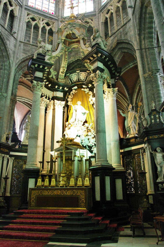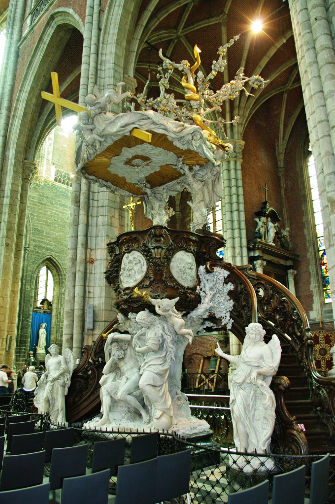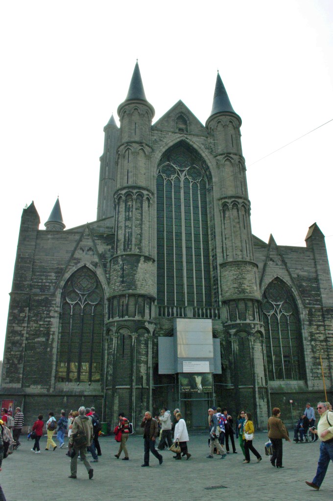 La catedral se construyó en estilo gótico brabantino a partir de la primera mitad del siglo XIII sobre una iglesia románica anterior, obras que se prolongaron durante tres siglos. Su pórtico remata en una torre de 90 metros de altura. En el interior se conservan buenos lienzos de pintura flamenca y un buen coro, pero lo que llama la atención es el púlpito de madera y mármol y la estatua de San Bavón que preside el altar.