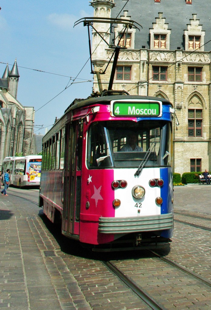 Callejear por Gante tiene algo de inmersión en la Edad Media, con toda la prosperidad de una ciudad rica e influyente. Curiosamente, vimos pasar un tranvía que circulaba en dirección a Moscú. Sus tiendas de bordados son un auténtico primor. Cuenta también con un Teatro Real. Cerca de la iglesia de Santiago una concha indicaba que nos encontrábamos en el Camino, era como estar en casa.