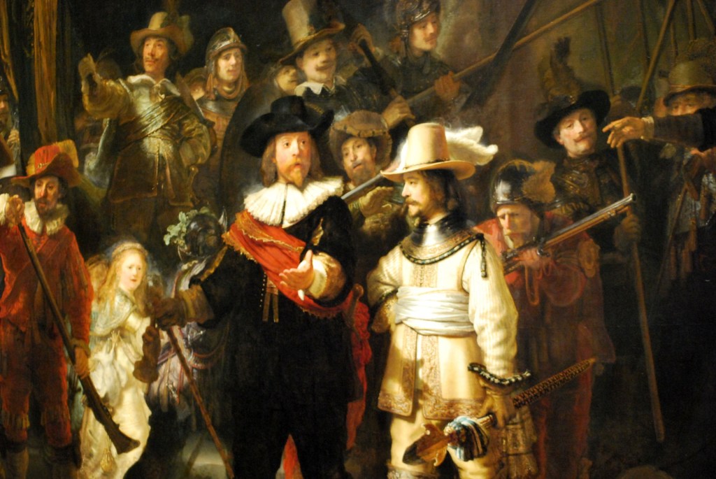 Habíamos llegado a Amsterdam con la ilusión de visitar el Rikjsmuseum, especialmente La ronda nocturna de Rembrant, a cuyo fin ya habíamos reservado entradas. Madrugamos y entramos entre los primeros, lo que nos permitió verlo con relativa tranquilidad. La ronda es en el Rikjs lo que la Gioconda al Louvre o las Meninas al Prado hasta el punto de que en una plazoleta le han dado cuerpo en bronce, con el que nos fotografiamos, como buenos guiris.