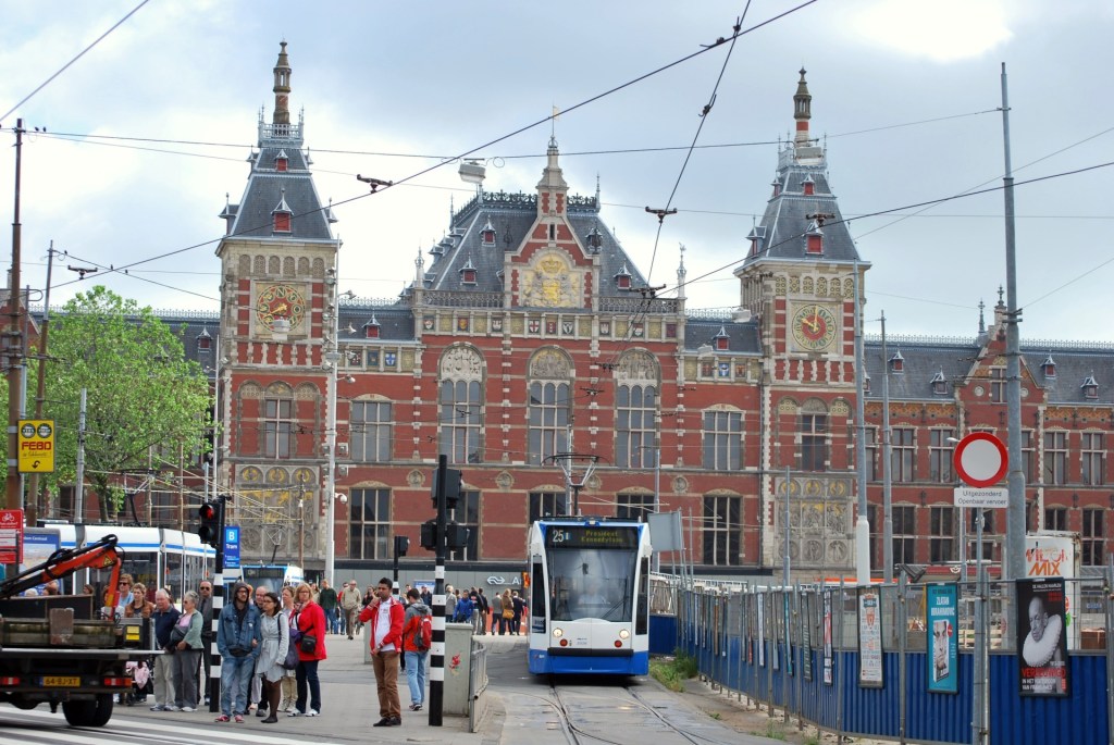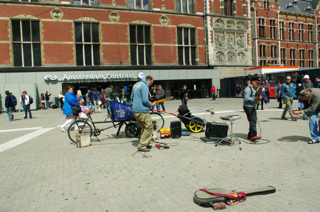 La Estación Central, otro punto neurálgico de Amsterdam, es como un ventilador de personas, entrando y saliendo para subir a un tren o bajándose de él. En la fachada hay dos mecanismos, uno mide el tiempo, el otro, el viento. Coincidimos allí con dos viejos roqueros que ofrecían un concierto al aire libre con canciones soul y rock sinfónico. Vivimos un momento mágico, que allí dicen lekker. Como volver a los años mozos. El Colega se emocionó y les compró un disco.