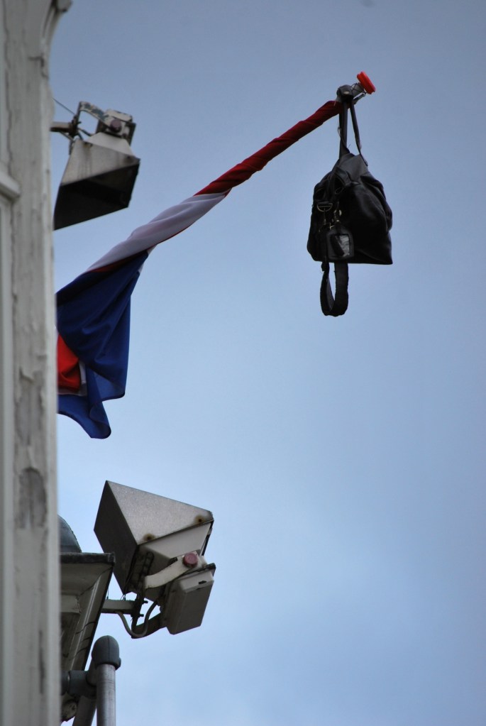 Descubrimos que las mochilas que cuelgan en algunos balcones junto a la bandera nacional indican que el estudiante de esa casa ha aprobado el curso. No pudimos comer un bocadillo de arenques, que nos apetecía mucho, por falta de oportunidad.