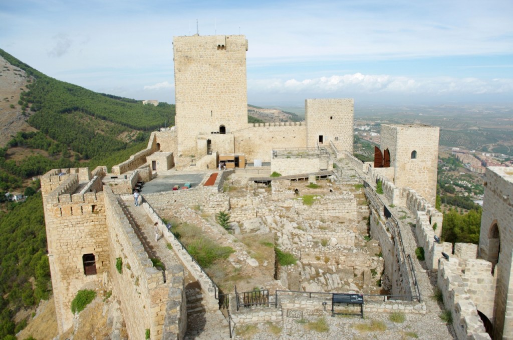 Este cerro de Santa Catalina, al que llegamos por una carretera en buen estado tiene una altura de 820 metros. Incluso si no existiera el castillo, el lugar merecería una visita para contemplar las estribaciones de la Sierra de Jabalcuz, por el sur, y la planicie de Jaén allá abajo, con su forma de lagarto y su catedral, como joya primorosa.