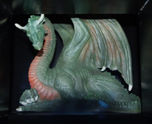 Tratamos de controlar la risa floja cuando descubrimos que en una de las columnas hay escondido un dragón o lagarto. A estas alturas ya hemos identificado que se trata de un holograma. Efectivamente, meto la mano -cual Tomás tecnológico- y compruebo que donde veo ese dragón verde sólo hay vacío. Si Aníbal levantara la cabeza…