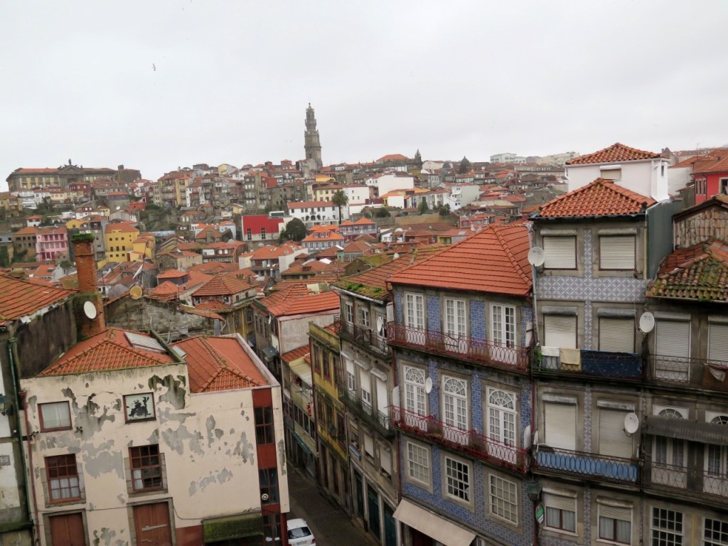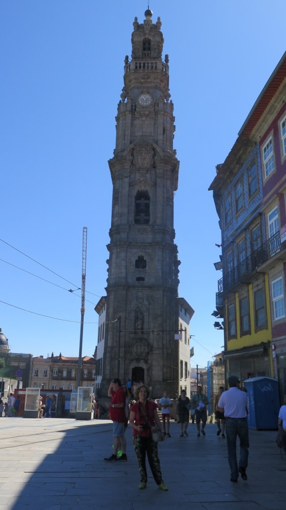 En esta plaza nace la calle de los Clérigos, coronada después de la enésima cuesta por la iglesia del mismo nombre y su famosa Torre, de 75 metros de altura. Una escalera de 240 peldaños conduce a la balconada que culmina la torre si se desea contemplar la ciudad desde las alturas. Nosotros medimos nuestras fuerzas y llegamos a dos conclusiones: que nos habían gustado las vistas de los tejados desde la plaza de la catedral y que habíamos tenido dosis suficientes de escalinatas con las de Braga.