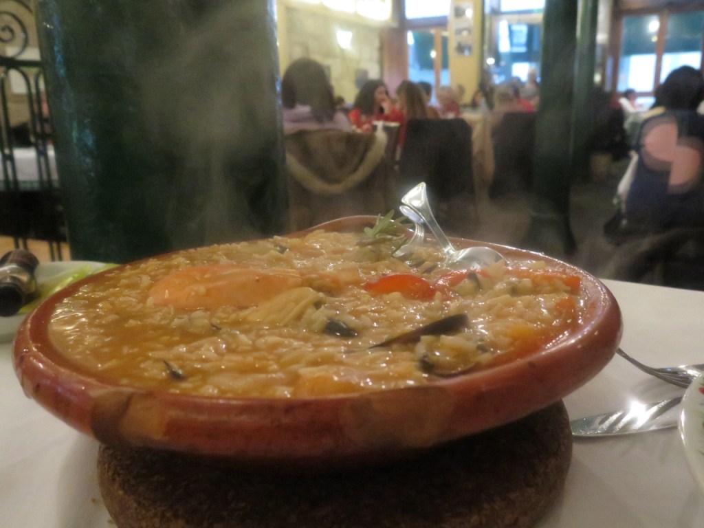 Con el espíritu ligero nos encaminamos hacia Ribeira, en busca del restaurante donde comimos el primer día de 2014 y del que guardábamos buen recuerdo: El Postigo de Carvao , en la Rua de la Fonte Taurina, a la orilla del Duero. El almuerzo nos confirmó en el reconocimiento. Baste decir que nos sirvieron una “tapa” de tripas –callos con alubias blancas- que bien hubiera bastado para comer una persona.