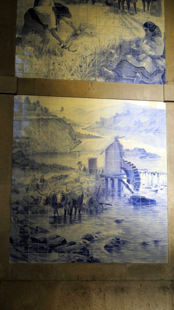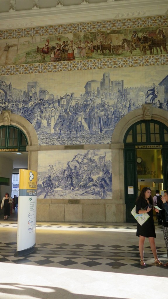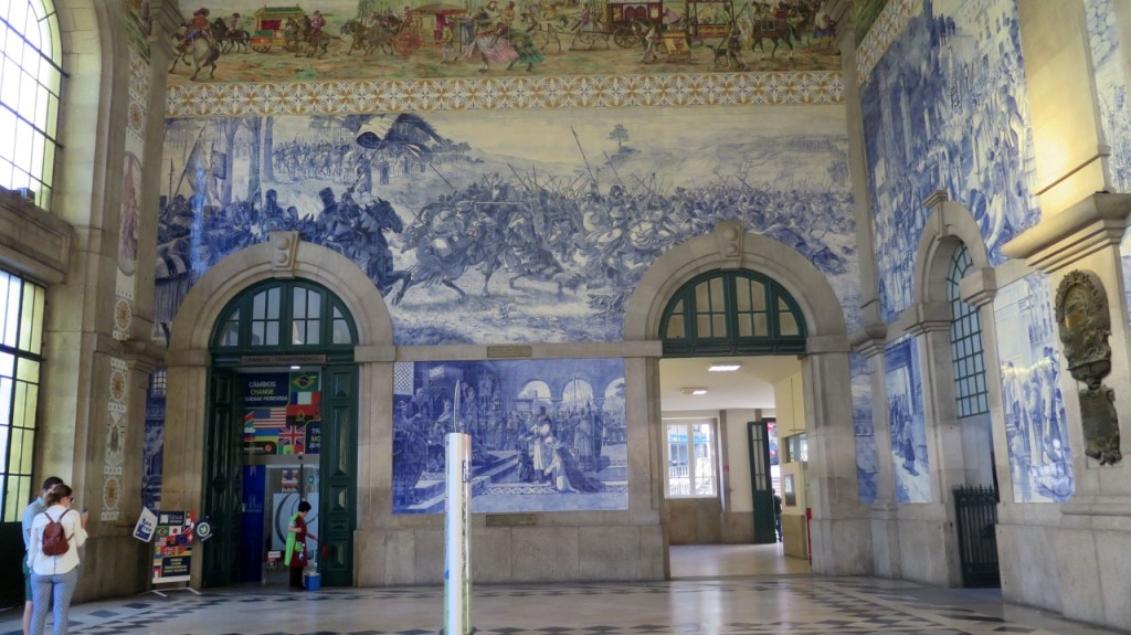 La estación de ferrocarril es un edificio imponente aunque su auténtica riqueza está en su decoración interior: Veinte mil azulejos decorados por el pintor Jorge Colaço, la historia de Portugal explicada en la típica azulejería portuguesa.. Un primor.