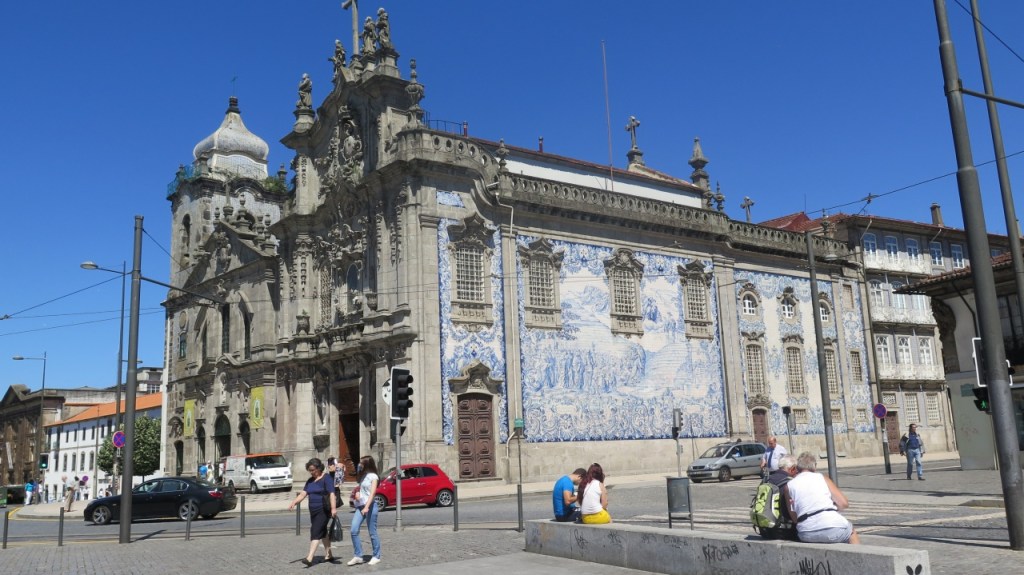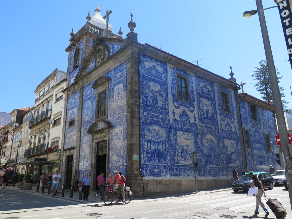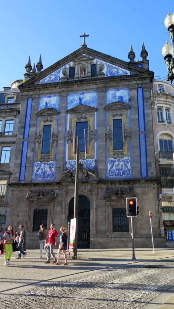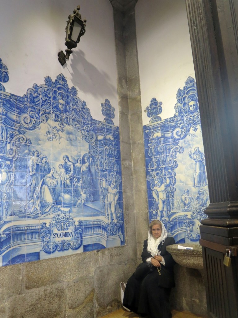 La calle Santa Catarina es peatonal, lo que anima al paseo que nos conduce a la capilla de las Ánimas, con sus paredes azulejadas. Las iglesias de Oporto están muy frecuentadas, la mayoría merecen una visita. En la del Carmo nos encontramos una viejita vendiendo estampas que debe de tener una historia.