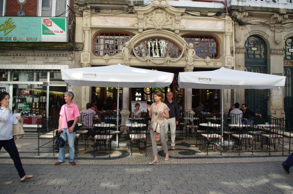 Este café ante el que se fotografían por miles los turistas –e incluso los viajeros como nosotros- es una institución en Oporto. Inaugurado en 1921, fue centro de reuniones y eje de la vida cultural y política de la ciudad. Su decoración interior y sus lámparas art nouveau lucen todo su esplendor después de la restauración acometida en 1994, tras unos años de decadencia. Resulta placentero tomar un capuchino o un té en este lugar donde, pese al trasiego turístico, parece haberse detenido el tiempo un siglo atrás.