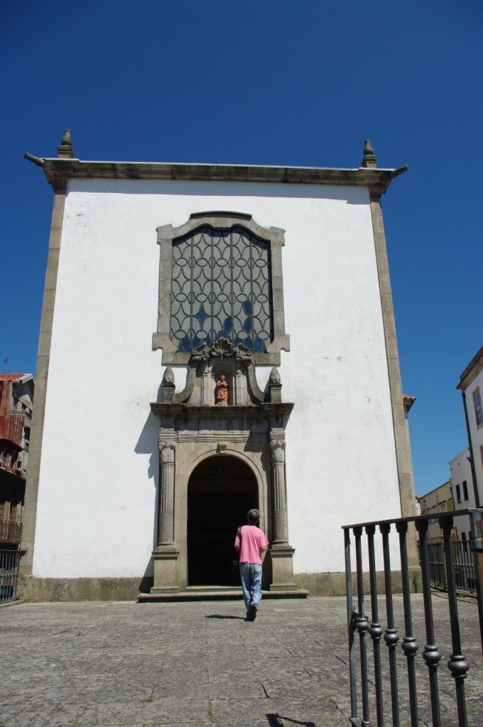 Cerca de la plaza de Batalha, frente al acceso al funicular, se levanta un pequeño oratorio: la Capilla de los Alfalates (sastres). Suele permanecer cerrado pero, en nuestro deambular por la ciudad, encontramos la puerta abierta y nos colamos. Siguiendo su costumbre, el Colega pegó la hebra con la persona que atendía el oratorio y así supimos que la capilla original se levantaba frente a la catedral pero en 1935 fue demolida para abrir la actual explanada de la seo y reedificada en su emplazamiento actual –al otro lado de la calle de Saraiva de Carvalho-. Preside el retablo manierista una imagen de la Virgen y a un costado, una urna de cristal guardaba la talla en madera de una mano. Curiosos como somos, preguntamos a quién correspondía la talla y la misma persona nos explicó que, cuando el traslado, descubrieron que la imagen había perdido una mano y el restaurador talló una nueva procurando que la incorporación no desentonara del conjunto. Tiempo después, apareció la extremidad perdida y, por tratarse de la original, la conservaron porque nunca se sabe qué puede deparar el futuro. De donde nos hemos encontrado con una Virgen de tres manos, lo que no está mal teniendo en cuenta que es patrona de los sastres, concluyó con humor.