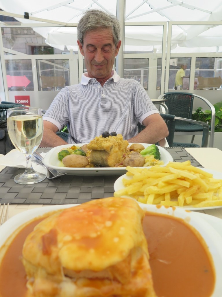 De vuelta de nuestro paseo en tranvía, nos despedimos de la ciudad en el Café Java, junto al Teatro Nacional de San Joâo, en la misma plaza de Batalha. El Java cumplía en 2014 un siglo de existencia y, aunque no tiene la fama del Majestic ni su elegancia, en la primera mitad del siglo pasado fue sede de tertulias literarias y políticas y, en su decadencia, conservaba un aire de cafetín culto. Anoté en mi haber que allí fue donde degusté la famosa francesinha. Quien la probó sabe que eso no es algo baladí.