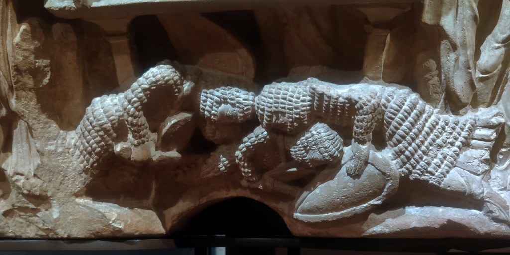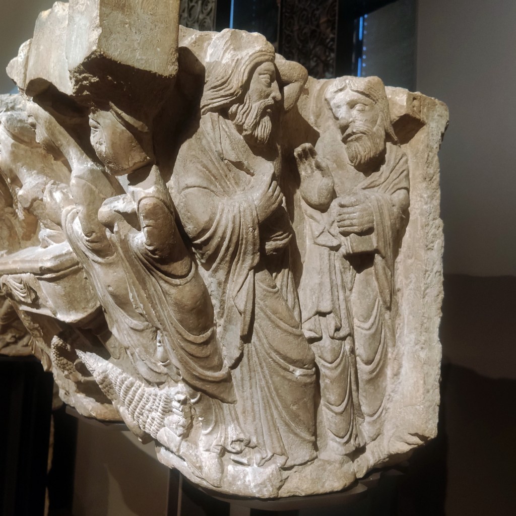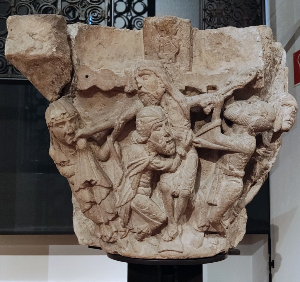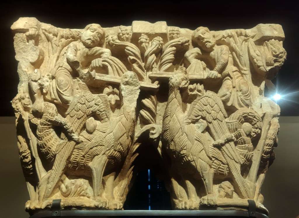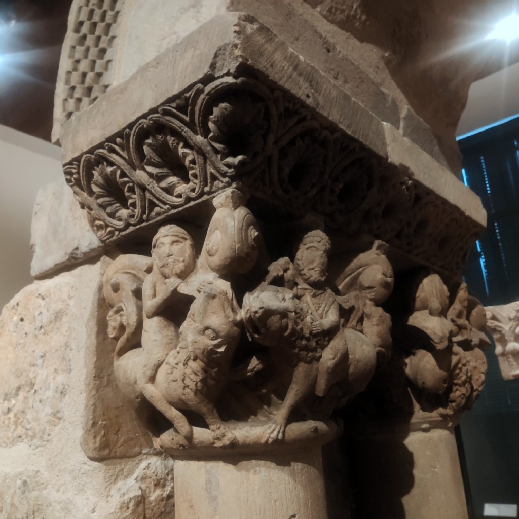 Ya está dicho que cualquiera de los apartados del museo merece una visita pues todos ellos atesoran piezas de primer nivel, pero poder ver de tú a tú la colección de pilas bautismales, capiteles, canecillos y sepulcros románicos, resulta emocionante. Empezando por el arco de San Pedro de Dueñas y sus capiteles de caballeros.