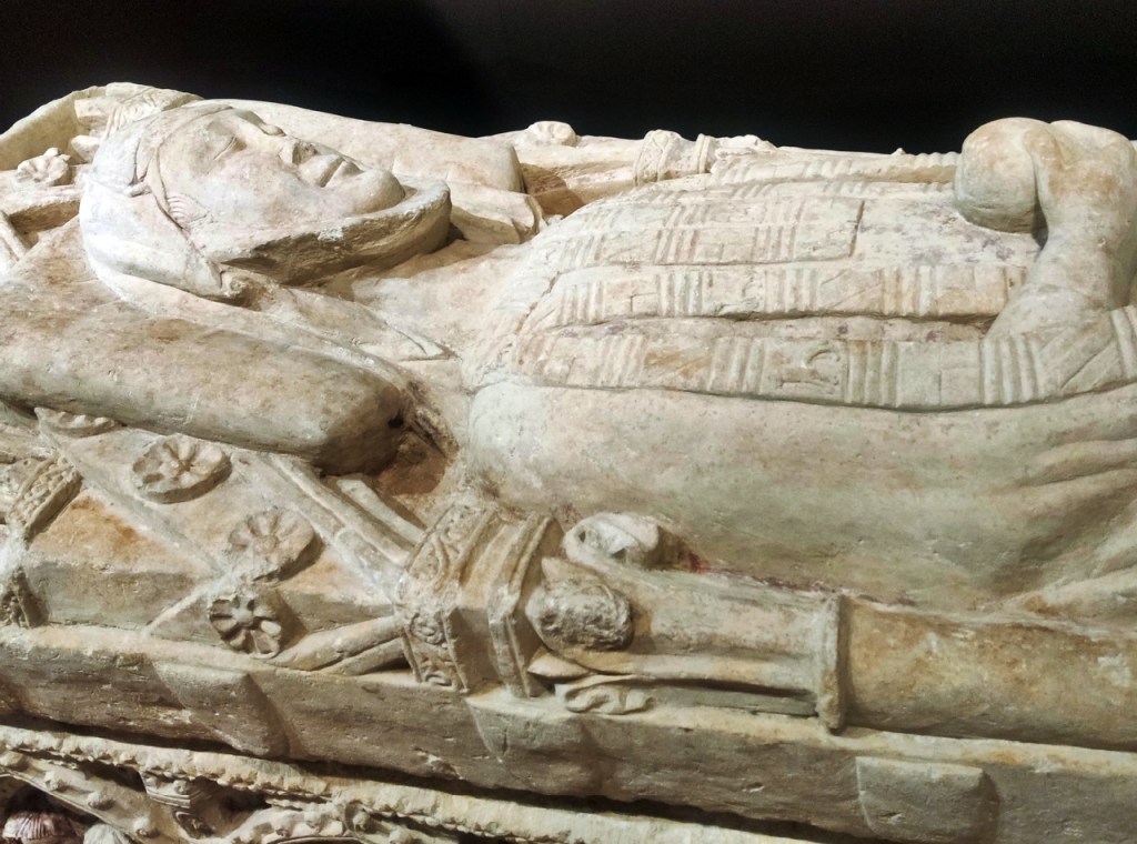 También del monasterio de Aguilar de Campoo, pero ya gótico, el sarcófago y estatua yacente de doña Inés Rodríguez de Villalobos, mujer «de clara estirpe nacida, fecunda en virtudes, piadosa, limpia de todo pecado mundano, prudente y elocuente«, arrebatada de la vida en el año 1339 de la era, según reza su epitafio.