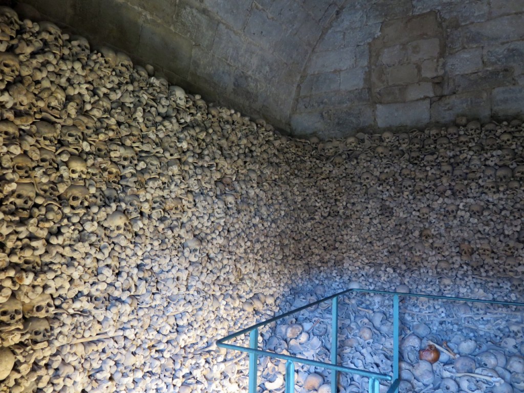 A esta construcción, se añadió por el crucero norte un compartimento cubierto de bóveda de aristas, con una columna central, pinturas y esculturas y un osario, del que se conservan miles de esqueletos de los siglos XIII al XVIII, de hombres, mujeres y niños. Como te ves, yo me vi. Como me ves, te verás, advierte una leyenda en el osario. Por si alguien había pensado otra cosa.