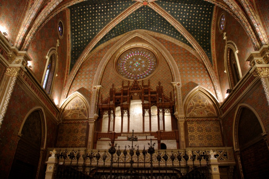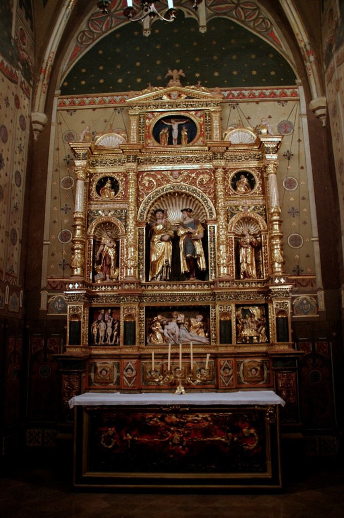 Desde el mausoleo se accede a la iglesia de San Pedro, de historia casi tan trágica como la de los Amantes. Construida alrededor de 1319 sobre un templo románico del XII, en 1873 sufrió un incendio ocasionado por un rayo que dañó el templo y el claustro. La reforma a comienzos del siglo XX fue radical, a cargo de Pablo Monguió. La iglesia pasó de mudéjar a neogótica, con la colaboración del pintor Salvador Gisbert. Lo que encontramos parece recién pintado después de la última reforma, muy vistoso, ciertamente. ¿Cómo se nos puede haber olvidado una iglesia tan bonita?, pregunto al Colega, preocupada por mi desmemoria. Eso digo yo, me responde. El vigilante nos aclara que la iglesia ha estado cerrada desde los años 70. La restauración de iglesia, claustro y torre se ha prolongado desde 1993 a 2005 y en 2008 se reabrió al público. ¿Cómo íbamos a recordar lo que no habíamos visto?