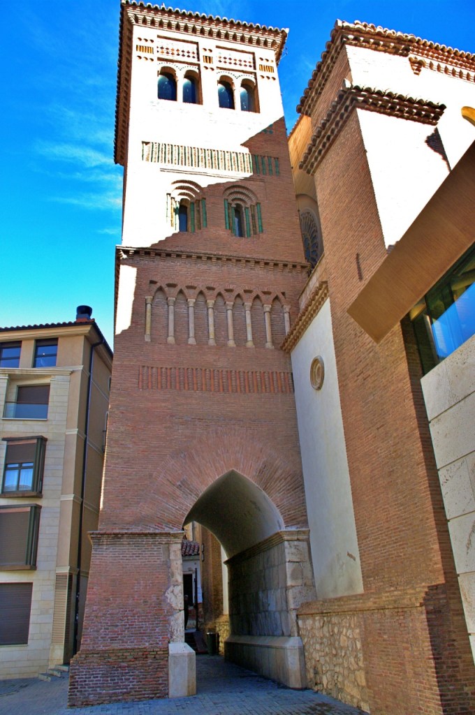 Aneja a iglesia se levanta la torre mudéjar del XIII, coetánea del campanario de la catedral y similar en su ornamentación. Es una torre-puerta, de tipología cristiana, dividida en pisos en el interior. Resultó muy dañada durante la guerra civil de 1936 y restaurada posteriormente, eliminando el remate neoclásico que había sido añadido en 1795.