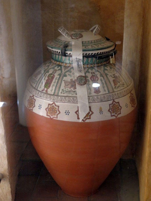 La instalación simula una dependencia antigua. En un rincón vemos una vasija convertida en cápsula del tiempo. El 19 de diciembre de 2017, al cumplirse los 800 años de la historia de los Amantes, los turolenses del presente depositaron en ella objetos y mensajes dirigidos a los del año 2117, cuando se cumpla el noveno centenario y se abra la vasija.
