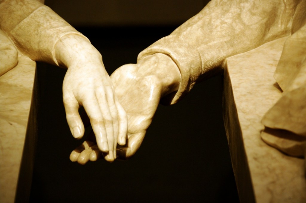 Muñoz Degraín pintó un cuadro y, finalmente, Juan de Ávalos les dio cuerpo de mármol, uniendo sus manos en un roce eterno.