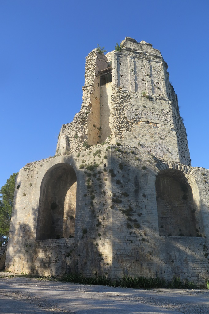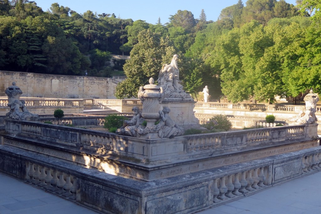 En los jardines de la Fontaine se pueden contemplar varios restos arqueológicos: la Torre Magna, que era la más alta de la muralla, y, al estar en la cima del monte Cavalier, puede verse desde cualquier punto de la ciudad. De la muralla romana, que tenía siete kilómetros de longitud, nueve metros de altura y dos de anchura, apenas quedan algunos fragmentos y dos puertas. Ha perdido uno de los tres niveles que tuvo y aún así mide 32 metros de altura. Aunque se puede acceder en coche hasta muy cerca de la torre, ascendemos a pie la cuesta con la esperanza de disfrutar de la vista panorámica que, dicen, se contempla desde ella pero cuando llegamos hace cinco minutos que se ha cerrado al público.
