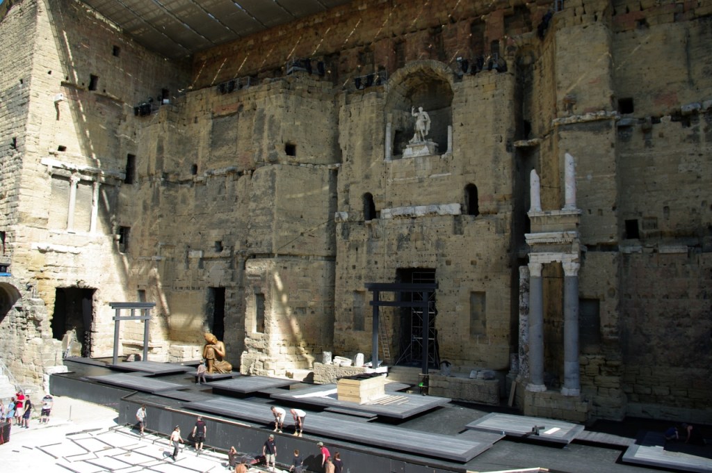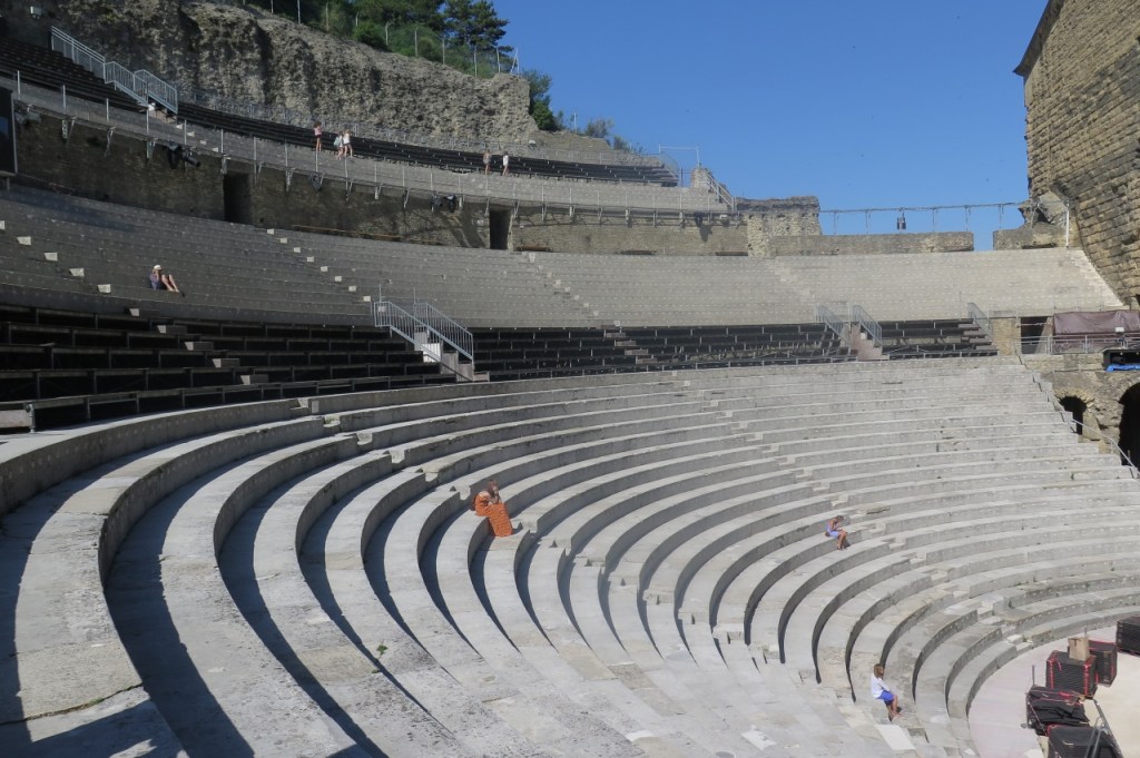 Como ya va siendo habitual en este viaje, el teatro antiguo se encuentra cubierto de andamiajes para la programación estival. Sobre el escenario un buda sigue impertérrito el ajetreo que le rodea. Este escenario dos veces milenario acogerá un festival de ópera durante los meses de julio y agosto y en septiembre, todo el pueblo se encargará de dar vida a la IIª Legión gala. Un campamento romano cuyos restos se mezclan con naturalidad en el urbanismo del siglo XXI.