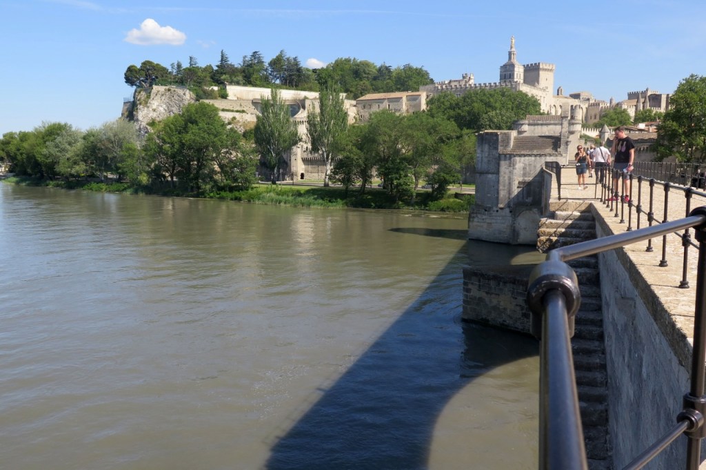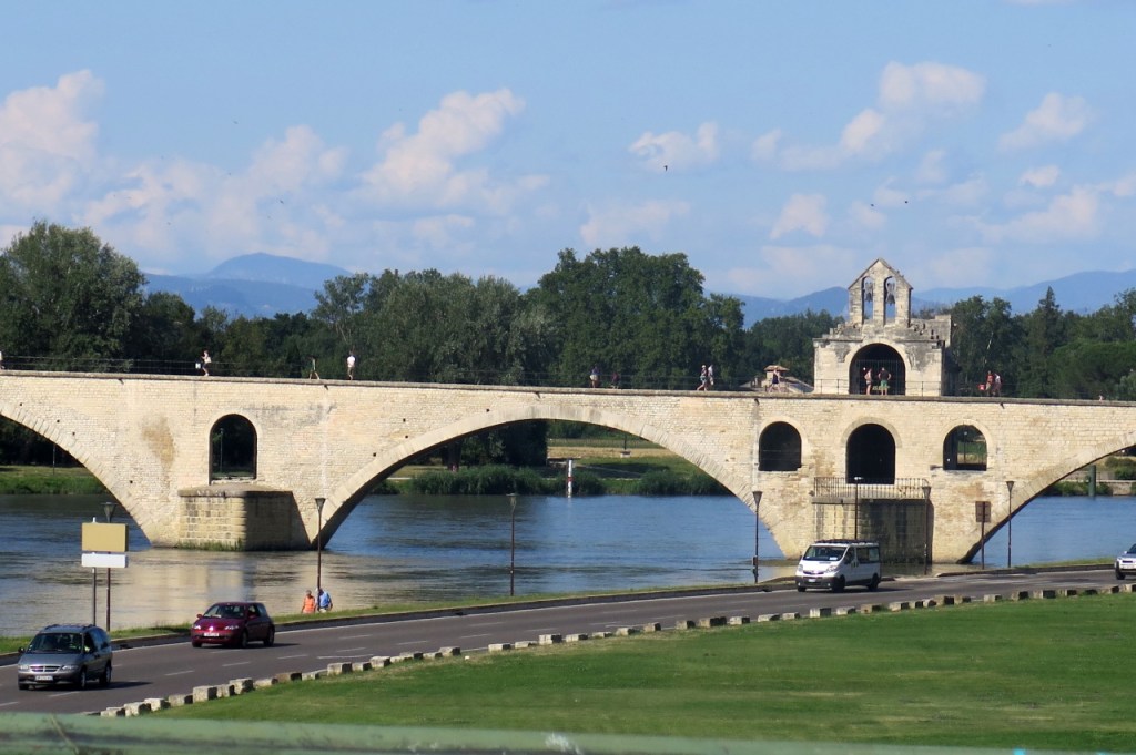 Tras el palacio, el segundo monumento de Aviñón es el puente Saint Bénézet o San Benito, sobre el Ródano. Hubo de ser impresionante con sus 22 arcos, porque sigue siéndolo con los cuatro que le han dejado las sucesivas avenidas del río. El puente es muy popular en toda Francia porque es motivo de una cancioncilla de cuna con la que han dormido casi todos los niños franceses. Sur la pont d’Avignon on y dance, on y dance…