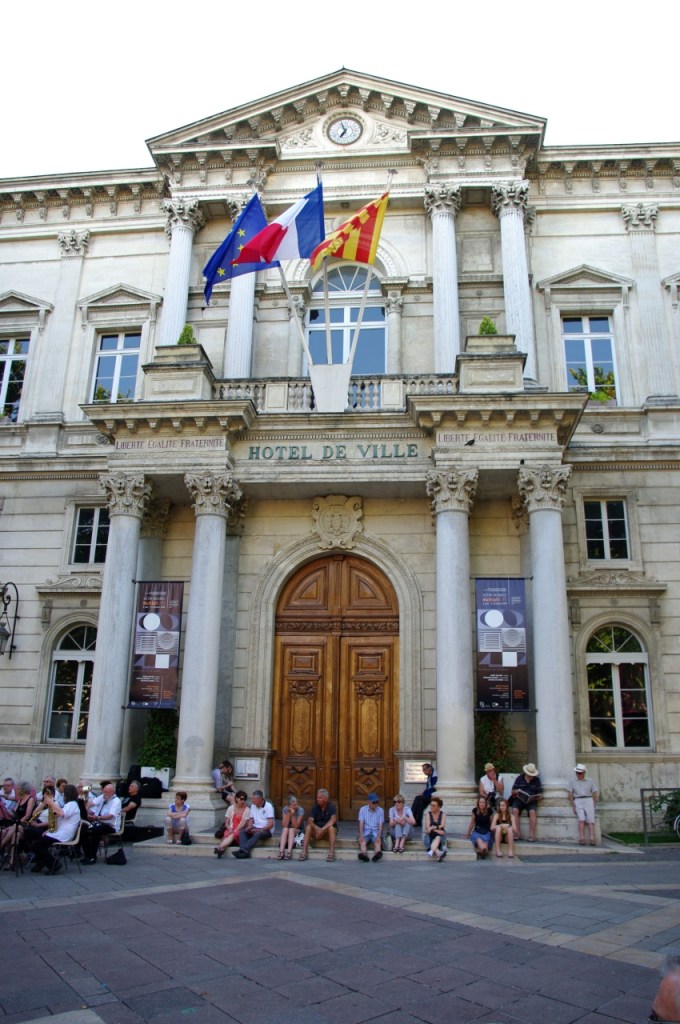 Llegamos avisados de que Aviñón y coche son conceptos antitéticos; hemos oído, incluso, que a partir de determinada hora no se permite el tráfico rodado pero al llegar, hacia las 11 de la mañana, comprobamos que entrar se puede, lo que no se puede es aparcar porque no hay un espacio libre. En nuestro afán por alojarnos en lugar céntrico hemos encontrado un hotel en la rue de la Republique que no tiene aparcamiento. Finalmente, optamos por dejar el coche en el del mercado -les Halles- y, rápidamente, nos lanzamos al callejeo.