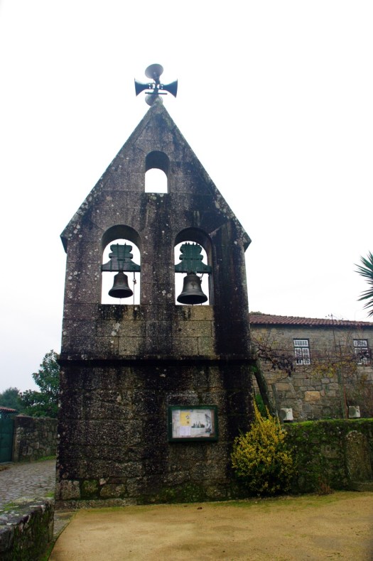 Nuestra siguiente parada era el monasterio de San Salvador de Bravães, en el municipio de Ponte de Barca, distrito de Viana do Castelo, a unos 40 kilómetros al sur de Valença do Miño, que se nos despistó en nuestra anterior visita a tierras portuguesas. Es Monumento Nacional desde 1910. Aparcamos junto a una cerca de piedra de granito, en cuyo centro se alza una pequeña iglesia; en un rincón al nordeste nos llama la atención una espadaña rematada por cuatro altavoces.
