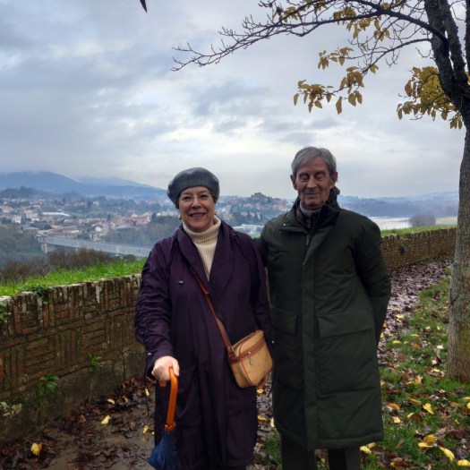 Salimos a dar un paseo y nos cruzamos con dos vejetes que se ofrecen a hacernos una foto y nos dan instrucciones para colocarnos de manera que se vea bien Tuy, de donde proceden ambos. Suponemos que han debido de venir paseando.