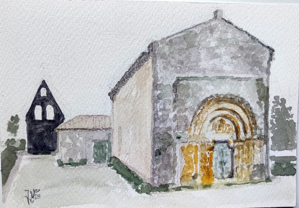 La puerta meridional tiene dos arquivoltas apuntadas; en el tímpano, un Agnus Dei sostiene la cruz con una de sus patas; en el dintel, dos mochetas con cabezas de animales.