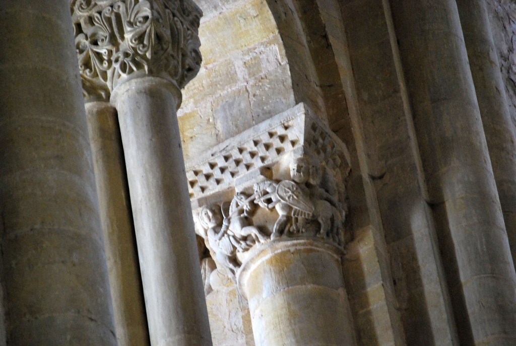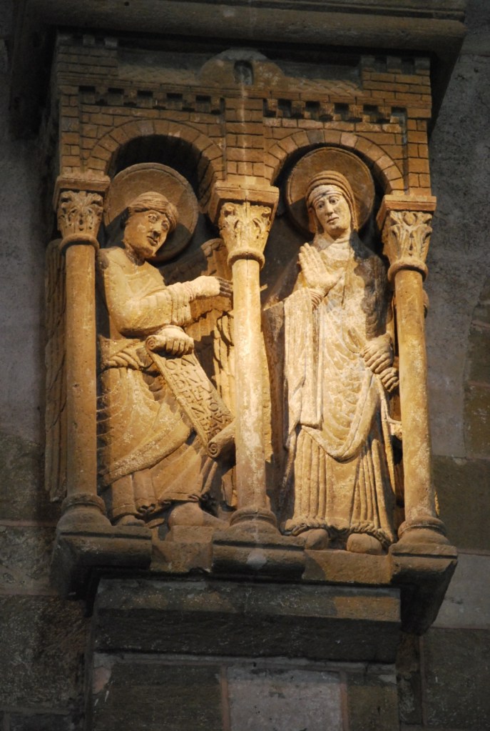 Tiene también hermosos capitales que, sin embargo, quedan oscurecidos por la espectacularidad del tímpano. En el transepto izquierdo se encuentra un altorrelieve representando la Anunciación, del mismo maestro del tímpano.