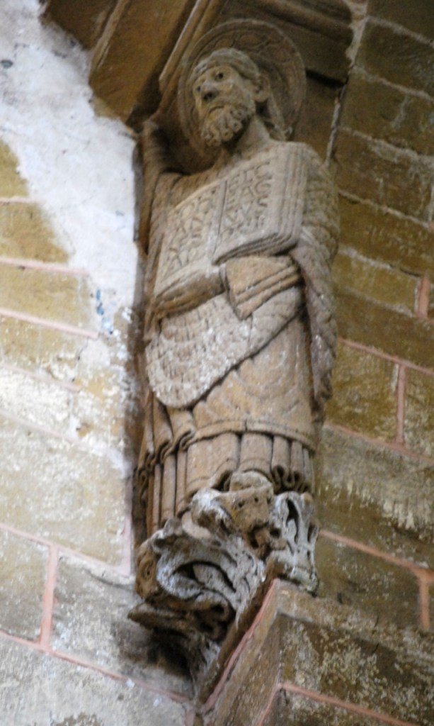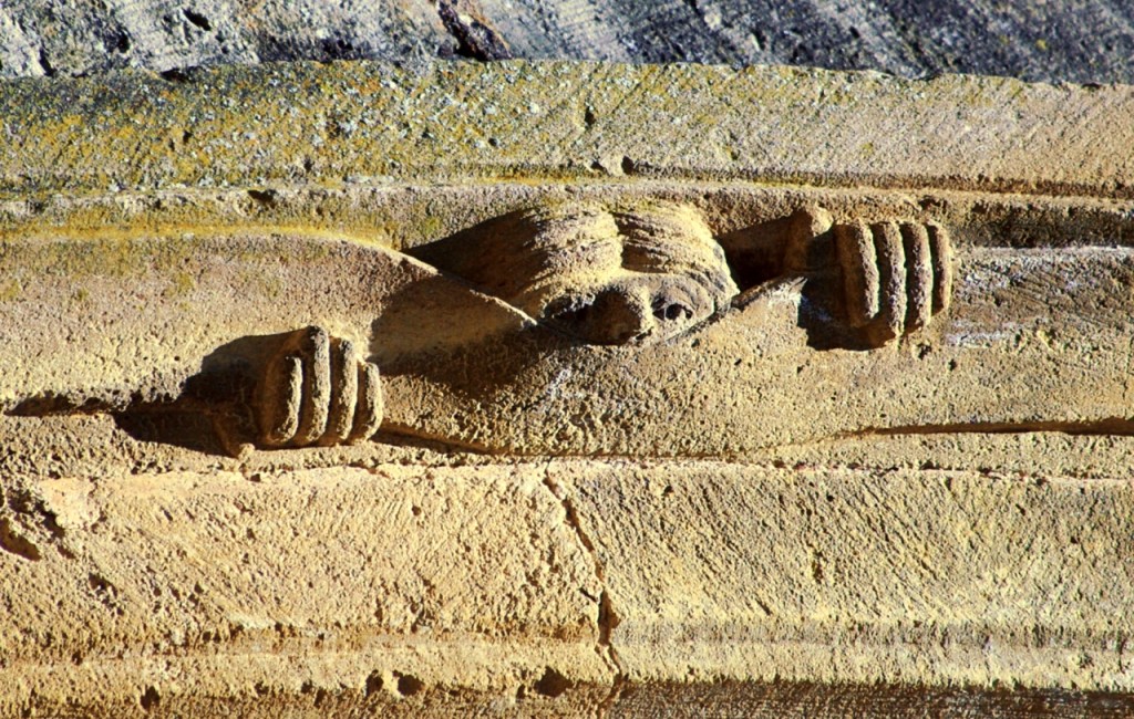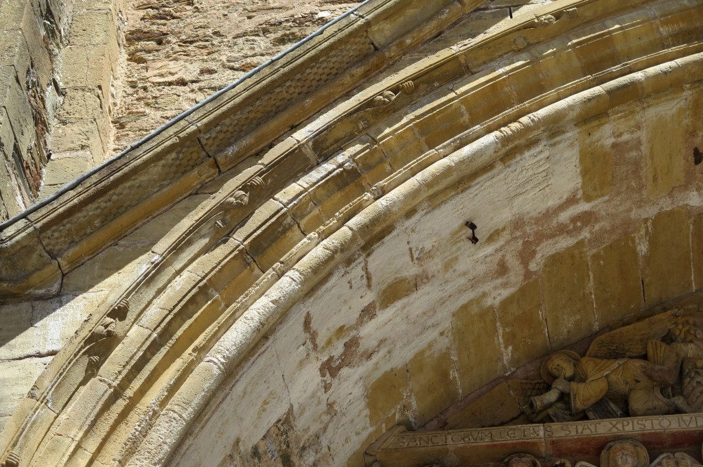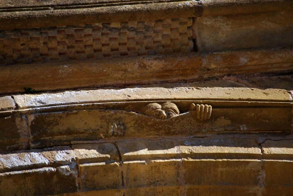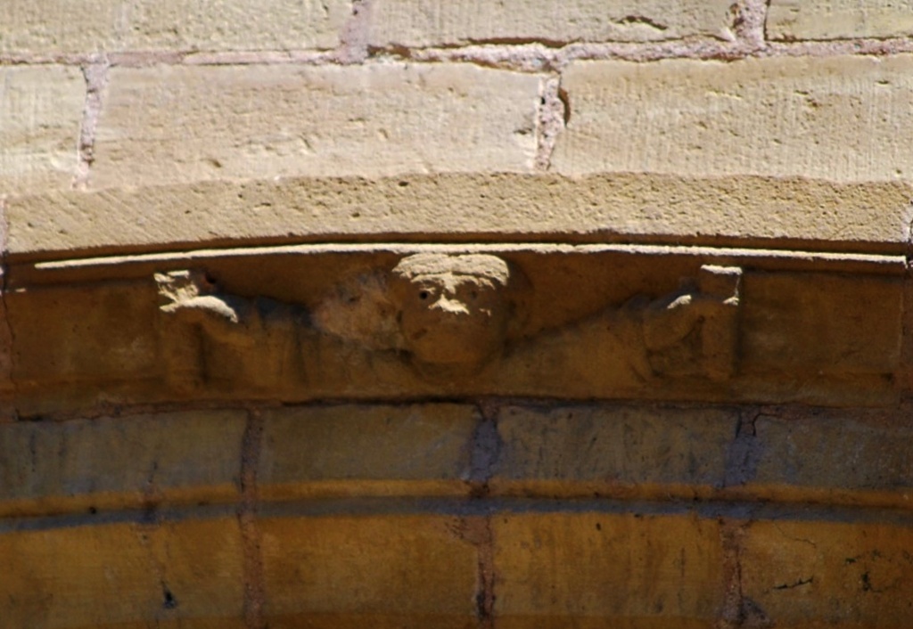 Busco los “curiosos” que despertaron mi interés y me sorprende su pequeñez. Se trata de catorce figuras que se repiten en la arquivolta. La perfección numérica: 14:2=7. Con la octava figura que termina cada serie en horizontal, es la plenitud. En el románico nada es casual.