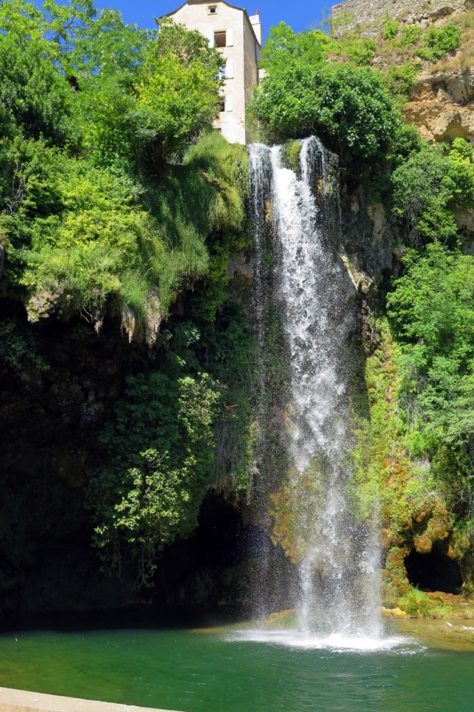Ya en la carretera de Conques descubrimos la cascada de Salles-la Source y paramos de nuevo. En la siguiente parada estamos a las puertas de Conques. Es una parada obligatoria para pagar los dos euros que permiten acceder al aparcamiento situado en las afueras del pueblo, adonde solo pueden entrar los coches de los apenas tres centenares de vecinos. En Conques parece que el tiempo se hubiera parado en el medievo. Desde la carretera se divisan las torres de la abadía por encima del caserío.