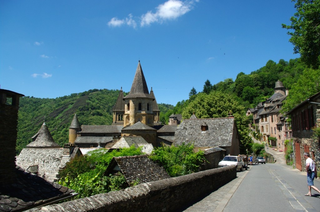 Conques es una pequeña pero antigua población en el departamento del Aveyron, en la región francesa de Occitania, tenida por uno de los hitos en el Camino de Santiago.. Su iglesia abacial está considerada una de las más importantes de Europa por su portada y por el tesoro sacro que aún conserva.
