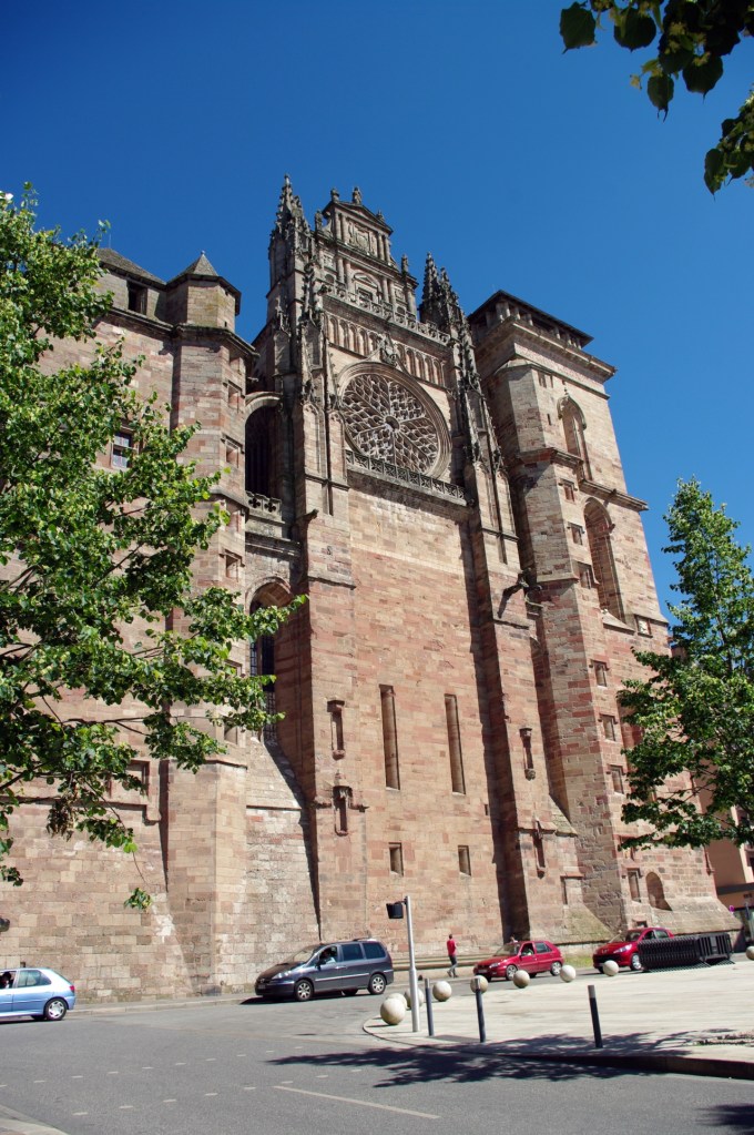El Colega recuerda que Rodez tiene una notable catedral y hacemos una parada para visitarla. Esta construcción monumental levantada a lo largo de trescientos años, fue utilizada en el siglo XVIII como referencia para establecer el cálculo de la circunferencia de la Tierra y la definición del metro.