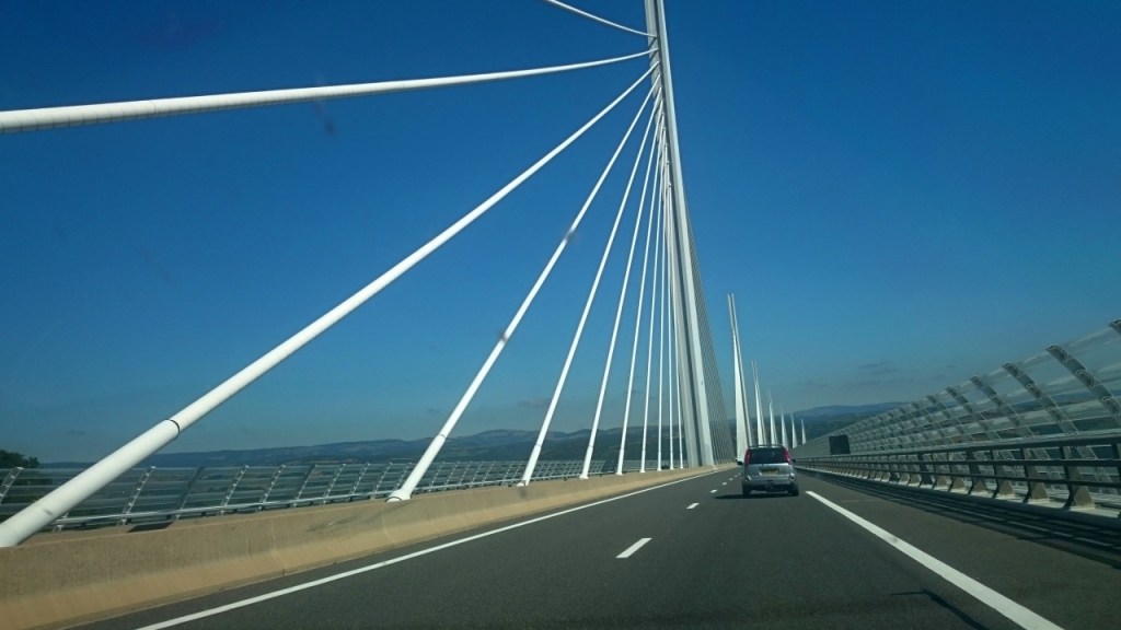 Hay un área de servicio desde la que pretendemos contemplar y fotografiar la obra pero la encontramos cerrada. Seguimos hasta el área de Aveyron, en Severac de Chateau, donde disfrutamos del entorno antes de tomar la N-88, que pasa por Rodez, de donde sale la carretera de Conques.